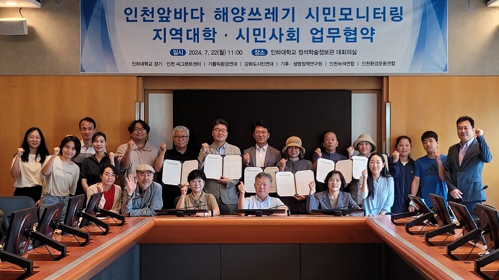 인하대 경기인천씨그랜트센터는 가톨릭환경연대, 강화도시민연대, 기후·생명정책연구원, 인천녹색연합, 인천환경운동연합은 22일 ‘인천 앞바다 해양쓰레기 시민 모니터링 지역대학·시민사회 업무협약’을 체결했다.