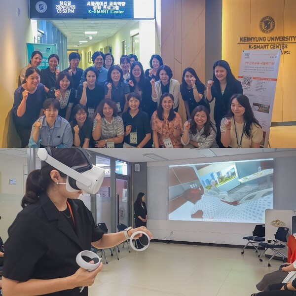 간호 시뮬레이션 교육역량 강화 프로그램 단체 기념 사진(위) VR 간호교육 시뮬레이션 SLS with VR(아래). |