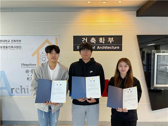 국립창원대 건축학부 학생들이 대한건축학회 디지털 건축대전 부문에서 우수상을 수상했다. 사진=국립창원대 제공 |