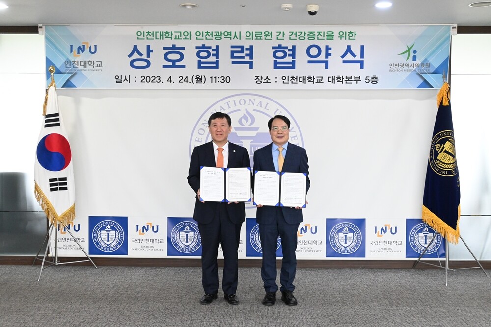 [대학저널 온종림 기자] 인천대학교와 인천광역시의료원(이하 인천의료원)이 24일 인천대 대학 본관에서 ‘인천 지역 복리증진과 지역경제 활성화’를 위한 업무협약을 체결했다.