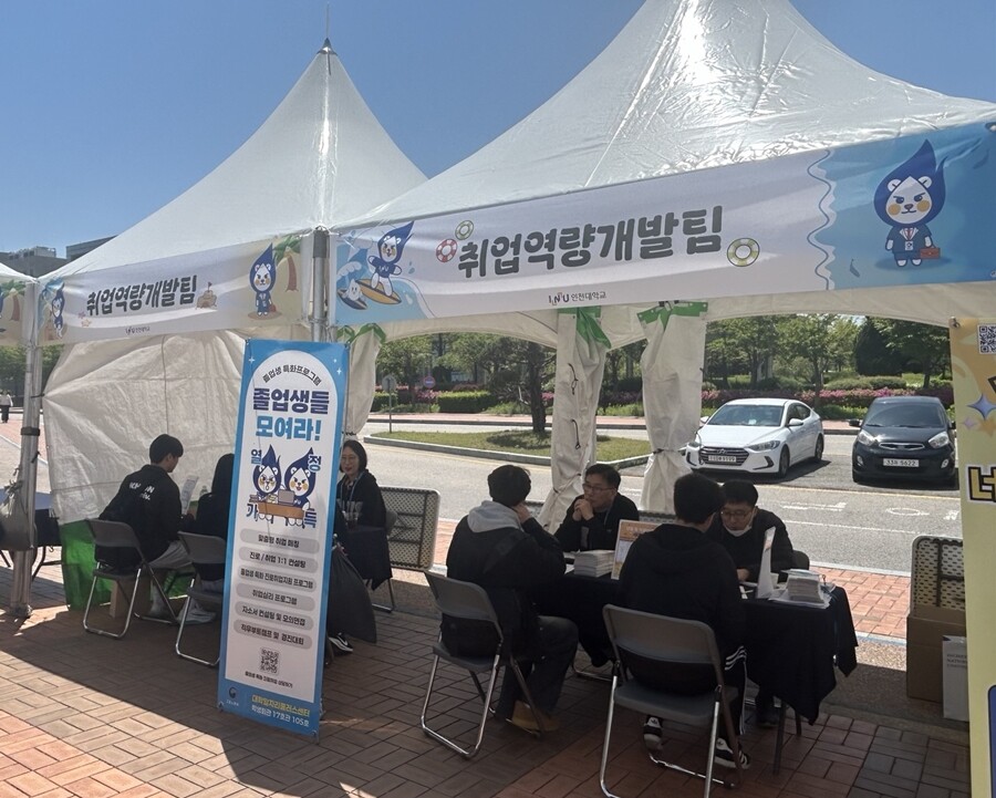 인천대 대학일자리플러스센터가 7일과 8일 열린 ‘2025 INU 유니한마당’ 행사에서 홍보 부스를 운영했다. 사진=인천대 제공 |