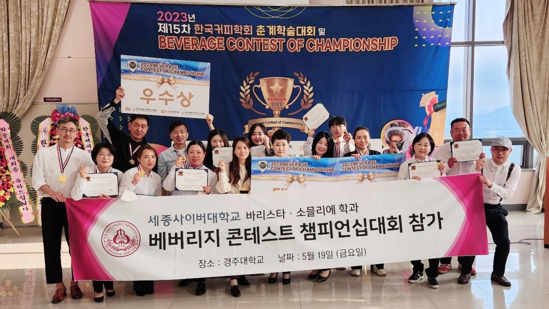 [대학저널 온종림 기자] 세종사이버대학교는 바리스타·소믈리에학과 학생들이 지난 19일 경주대에서 열린 ‘2023 베버리지 콘테스트 오브 챔피언십 대회'에서 커피 브루잉과 전통주 칵테일, 소믈리에 부문에 출전해 대상과 우수상, 금상, 은상, 동상을 수상했다고 24일 밝혔다.