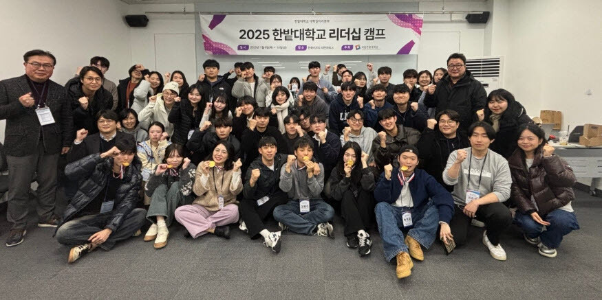국립한밭대 대학일자리본부 ‘리더십 역량개발 캠프’에 참여한 학생들과 관계자들이 프로그램을 마무리하며 기념촬영을 하고 있다. 사진=국립한밭대 제공 |