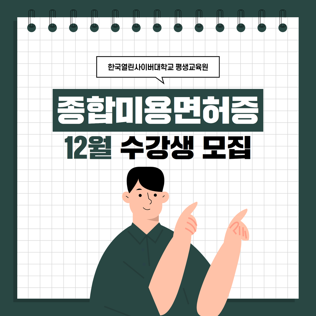 한국열린사이버대학교 평생교육원은 종합미용면허증 수강생을 모집하는 가운데 탄탄한 커리큘럼과 다양한 장학혜택들도 공개했다. 12월 11일까지 모집할 예정이며, 12일 과정을 개강한다. 100% 온라인으로 진행되는 이번 과정은 시간과 장소에 구애 받지 않고 출석, 수강, 과제까지 수행할 수 있는 최고의 기회다.