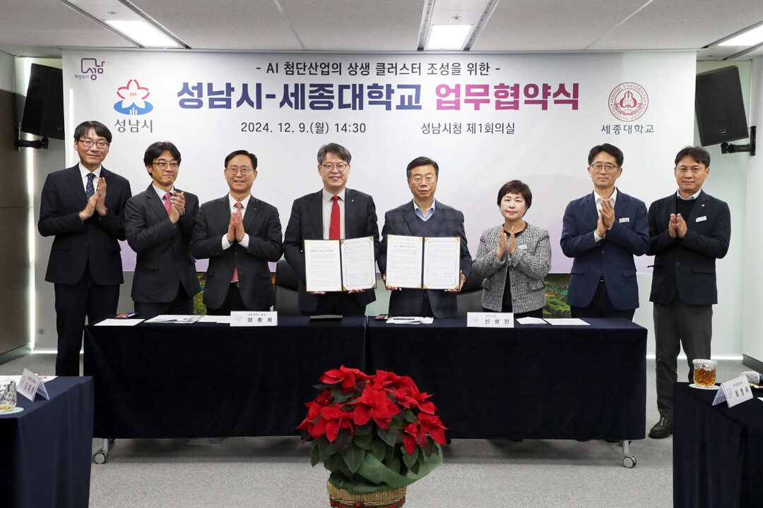 [대학저널 이선용 기자] 세종대학교와 경기도 성남시가 12월 9일 오후 2시 30분 4차 산업혁명의 핵심 기술인 인공지능(AI)과 시스템반도체 산업 발전을 위한 업무협약을 체결했다.