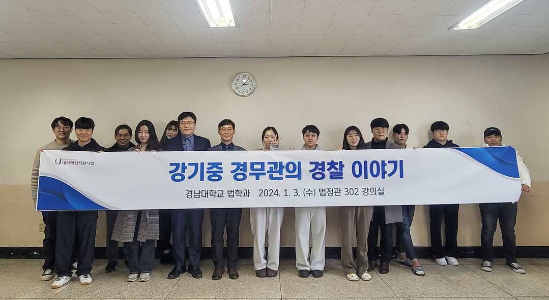 [대학저널 이선용 기자] 경남대학교 법학과가 최근 법정관 302호에서 ‘강기중 경무관의 경찰이야기’ 특강을 진행했다.