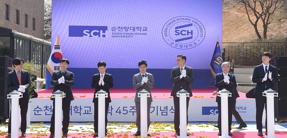 순천향대가 31일 건학 45주년을 맞아 '신 UI'를 선포하고 있다. 사진=순천향대 제공 |