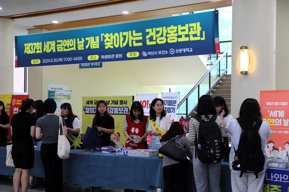 선문대학교와 아산시보건소는 세계 금연의 날을 맞아 30일 선문대 아산캠퍼스에서 지역 사회 금연 문화 확산을 목적으로 건강 캠페인을 진행했다.
