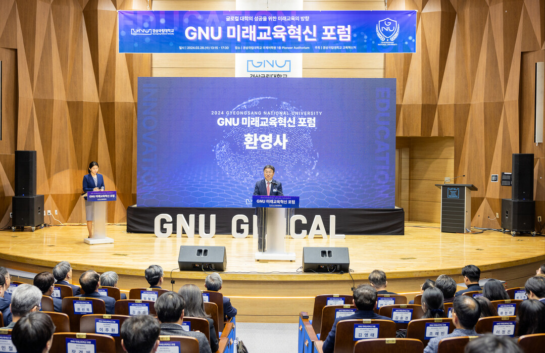 경상국립대 교육혁신처가 2월 28일 국제어학원 파이어니어 오디토리엄에서 ‘GNU 미래교육혁신 포럼’을 개최했다. 사진=경상국립대 제공 |