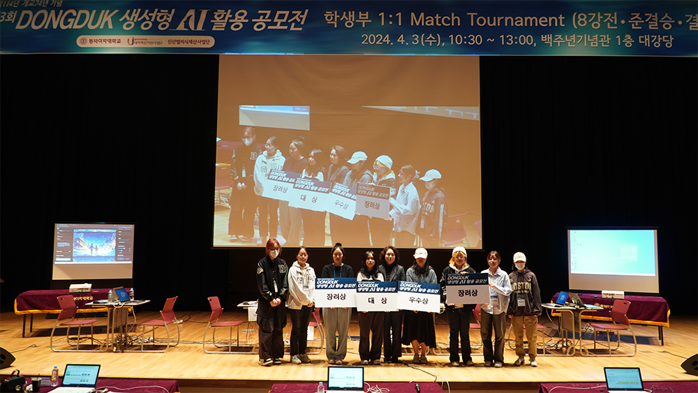 [대학저널 온종림 기자] 동덕여자대학교가 창학 114년 개교 74년을 기념해 '제3회 동덕 생성형 AI 활용 공모전' 토너먼트 및 시상식을 지난 3일 동덕100주년기념관 대강당에서 성공적으로 개최했다.