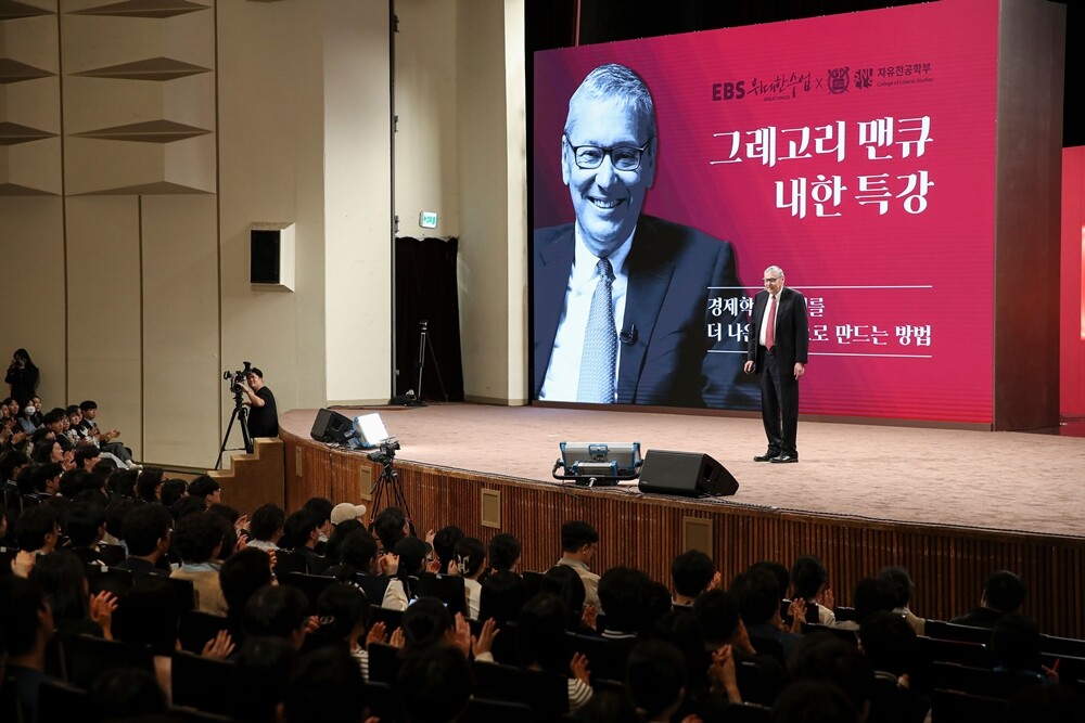 서울대 자유전공학부가 지난 4월 24일 문화관 대강당에서‘맨큐의 경제학’저자인 하버드대학교 경제학과 그레고리 맨큐 교수 특강을 진행했다. 사진=EBS 제공 |