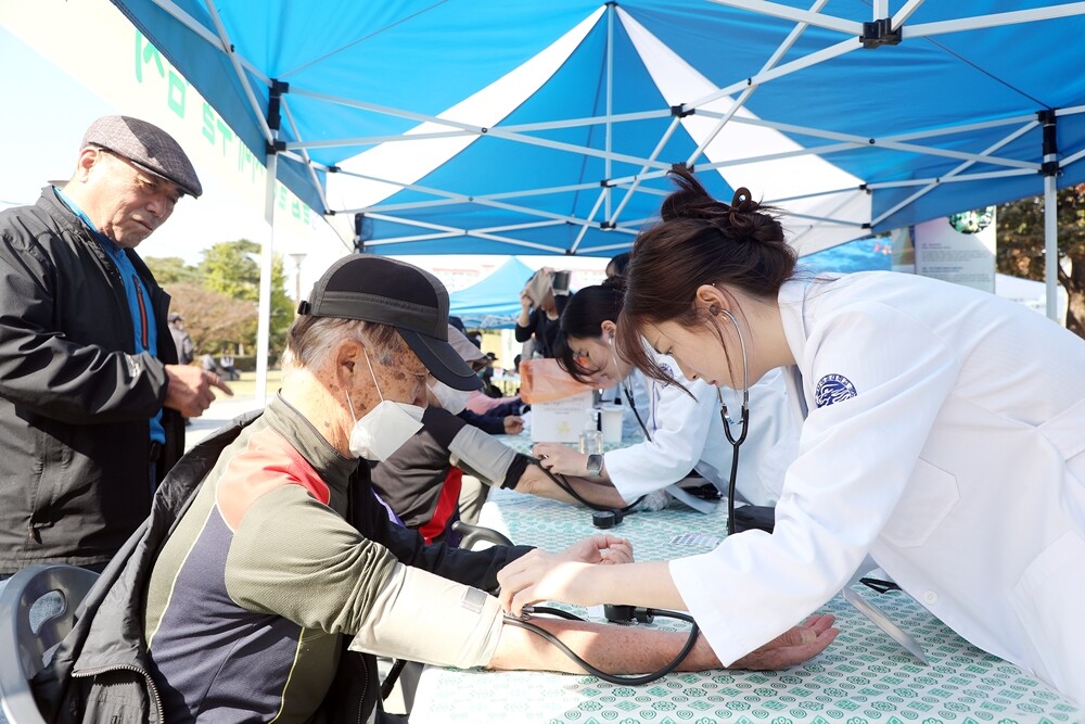 행사에 참여한 시민이 혈압을 체크받고 있다. 사진=영남이공대 제공 |
