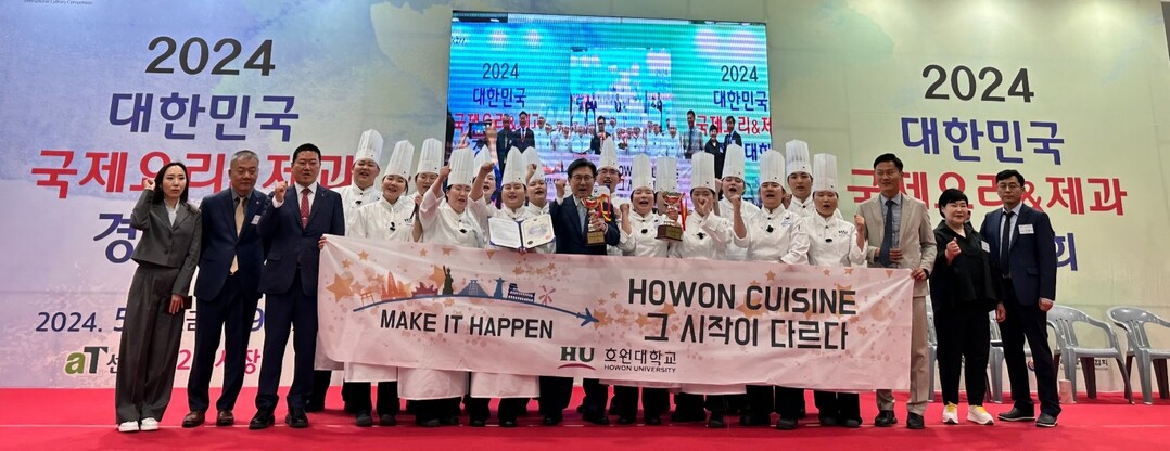[대학저널 이선용 기자] 호원대학교 호텔외식조리학과가 지난 5월 17일부터 19일까지 서울 양재동 aT센터 제2전시장에서 열린 ‘2024 대한민국 국제요리&제과 경연대회’에 참가해 전원 수상하는 쾌거를 이뤘다.