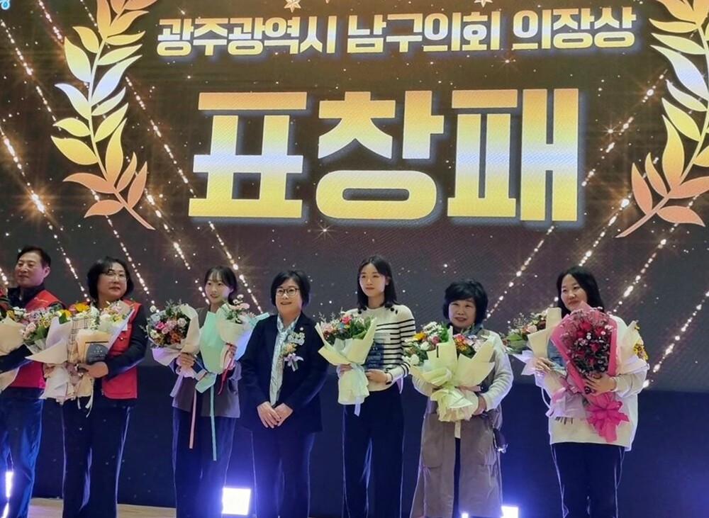 광주대 평생교육학과 문예령 씨(오른쪽 첫 번째)가 ‘광주 남구의장상’을 수상했다. 사진=광주대 제공 |