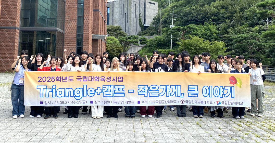 [대학저널 이선용 기자] 국립군산대학교는 29일 국립한국교통대, 국립한밭대와 공동으로 지난 8월 27일부터 3일 동안 경기도 용인 대웅경영개발원에서 ‘2025학년도 국립대학육성사업 Triangle+ 캠프 – 작은가게, 큰 이야기’를 운영했다고 밝혔다.