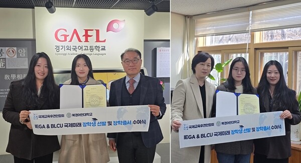 국제교육후견인협회(이사장 이지희)가 중국 북경어언대학교(BLCU)와 협력해 운영하는 ‘IEGA-BLCU 국제미래인재 장학 프로그램’을 통해 2026학년도 장학생 2명을 선발하고, 각 학교에서 장학증서 수여식을 진행했다.
