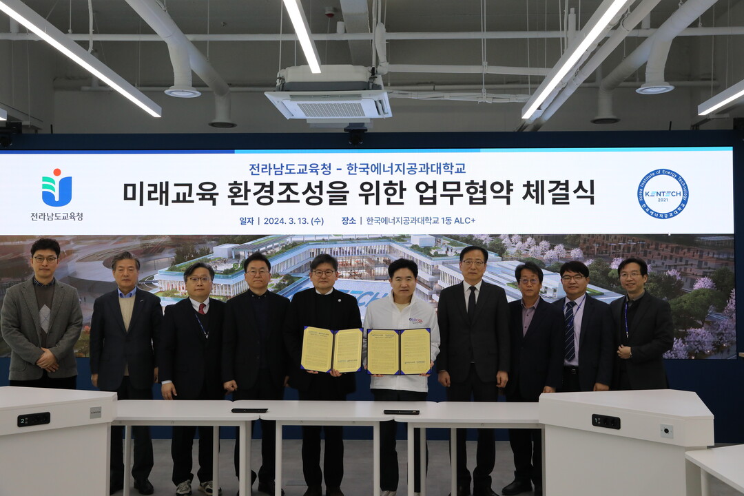 [대학저널 이선용 기자] 한국에너지공과대학교가 13일 전라남도교육청과 미래교육 환경조성 협력을 위한 업무협약을 체결했다.