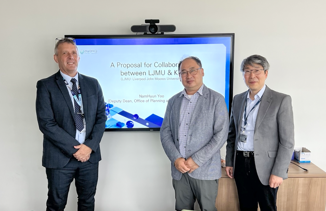 왼쪽부터 리버풀존무어스대 연구처장 Keith George 교수, 경남대 기획조정처 부처장 유남현 교수, 리버풀존무어스대 컴퓨터공학부 이규명 종신교수. |