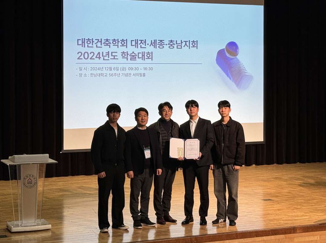 [대학저널 이선용 기자] 국립한밭대학교 설비공학과 학부생들이 지난 12월 6일 대한건축학회 대전·세종·충남지회 학술위원회가 주관한 학술대회에서 우수상을 수상하며 연구역량을 입증했다고 11일 밝혔다.