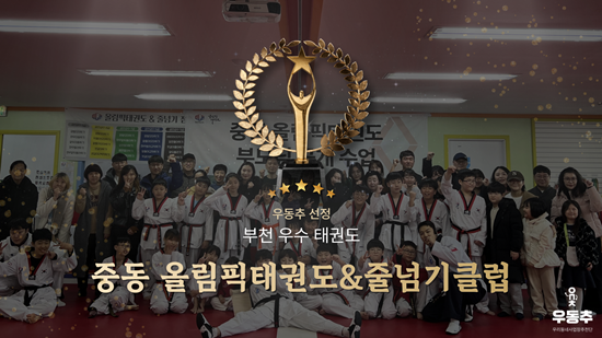 올림픽태권도&줄넘기클럽이 우리동네사업장추천단(이하 우동추)이 선정한 '부천시 중동 대표 우수 태권도장'에 이름을 올렸다. 이는 부천시 태권도장 중 우수한 교육기관임을 공식 인증받은 것이다.