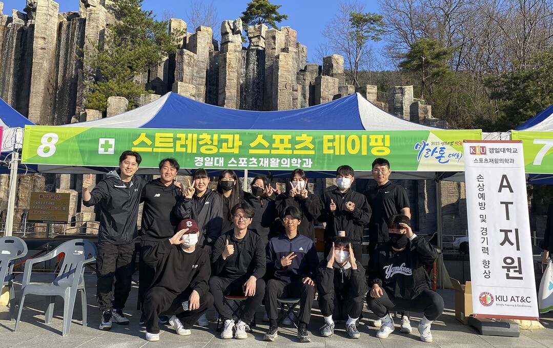 이날 경일대 스포츠재활의학과 교수진 3명을 비롯해 전공 학생 10명이 참가자들을 위해 개별 스트레칭, 부상 예방을 위한 스포츠 테이핑, 부상 처치 등을 제공했다.