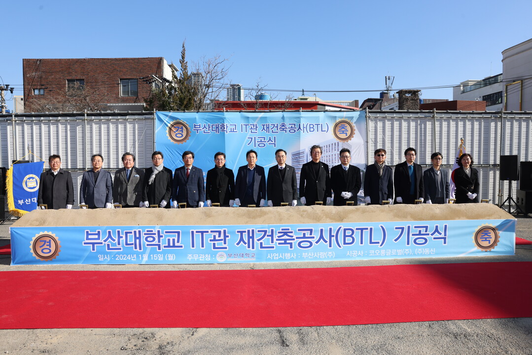 [대학저널 이선용 기자] 부산대학교가 IT(정보기술) 관련 학과들의 교육·연구시설 확충과 공간 집적화를 위해 추진하고 있는 ‘IT관 재건축 BTL공사’의 기공식이 15일 오후 교내 현장부지에서 열렸다.
