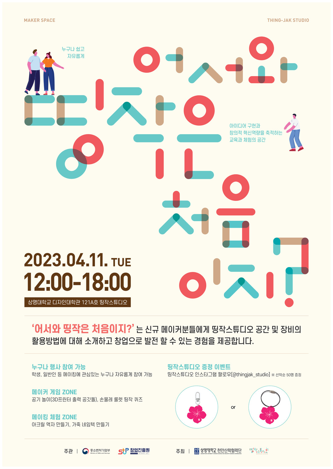 상명대는 행사에서 메이커 스페이스 띵작스튜디오의 의미와 역할, 공간과 장비 활용법을 설명할 계획이다. 아울러 신규 메이커들의 참여를 확대하고 안전하고 즐거운 메이킹 유도를 목표로 하고 있다.