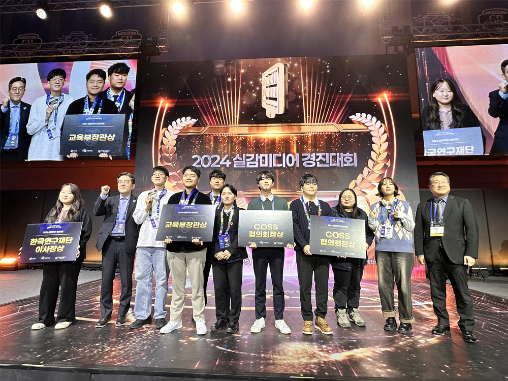 한편, 교육부와 한국연구재단 주최로 대구 EXCO에서 지난 11월 20일부터 22일까지 개최된 ‘2024 CO-SHOW’ 행사에서도 경진대회 수상작들에 대한 시상이 이어졌다. ‘2024 실감미디어 경진대회’ 대상 수상팀인 건국대 ‘Cap-14’ 팀은 CO-SHOW 행사에서 사회부총리 겸 교육부장관상을 수상했다.