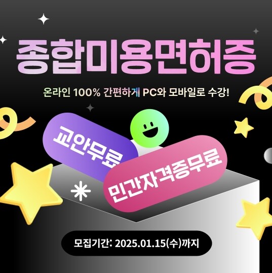이론을 필수과목으로 현장실습도 선택적으로 추가하여 미용전문가로서의 역량을 키울 수 있도록 구성했다. 특히 종합미용면허증은 헤어, 피부, 메이크업, 네일 등 미용 전반을 아우르는 자격으로 뷰티 산업 현장에서 폭 넓게 활용할 수 있다.