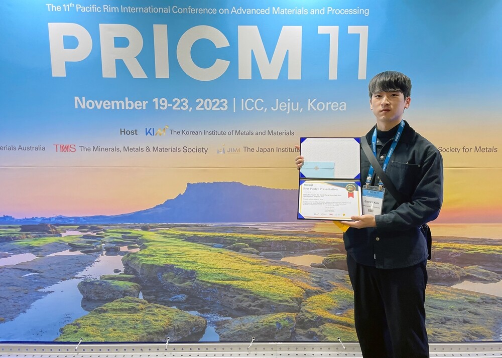 김대식 학생은 대한금속‧재료학회 주관으로 최근 제주 국제컨벤션센터(ICC)에서 열린 이번 국제학술대회에서 포스터 논문 ‘Effect of Rhenium addition on Microstructure and Mechanical Properties of Ni-16Mo ODS alloys for Next Generation Energy Applications’(지도교수 노상훈)로 상을 받았다.