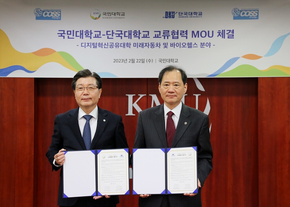 [대학저널 온종림 기자] 국민대학교와 단국대학교는 22일 양 대학의 특성화 분야인 미래자동차와 바이오헬스 분야의 핵심인재 양성을 위해 업무협약(MOU)을 체결했다.