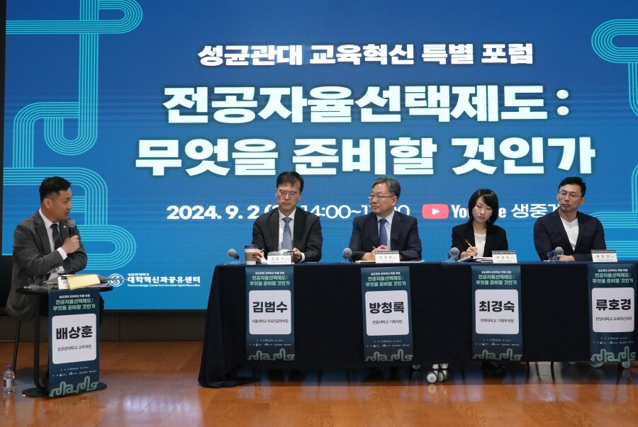 [대학저널 이선용 기자] 성균관대학교 대학혁신과공유센터와 교육과미래연구소는 지난 9월 2일 서울 종로구 성균관대 인문사회과학캠퍼스에서 ‘전공자율선택제도: 무엇을 준비할 것인가’를 주제로 교육혁신 특별 포럼을 개최했다.