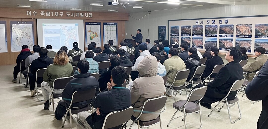 둘째 날 전남개발공사의 협조를 통해 여수 죽림1지구 도시개발사업 현장을 방문하여 친환경 스마트 도시 조성 과정과 ESG 요소가 반영된 공공개발 프로젝트를 학습했다. 이 과정에서 학생들은 실제 개발 현장에서 이뤄지는 환경친화적 기술 적용 사례를 직접 확인하며 실무 경험을 쌓았다.