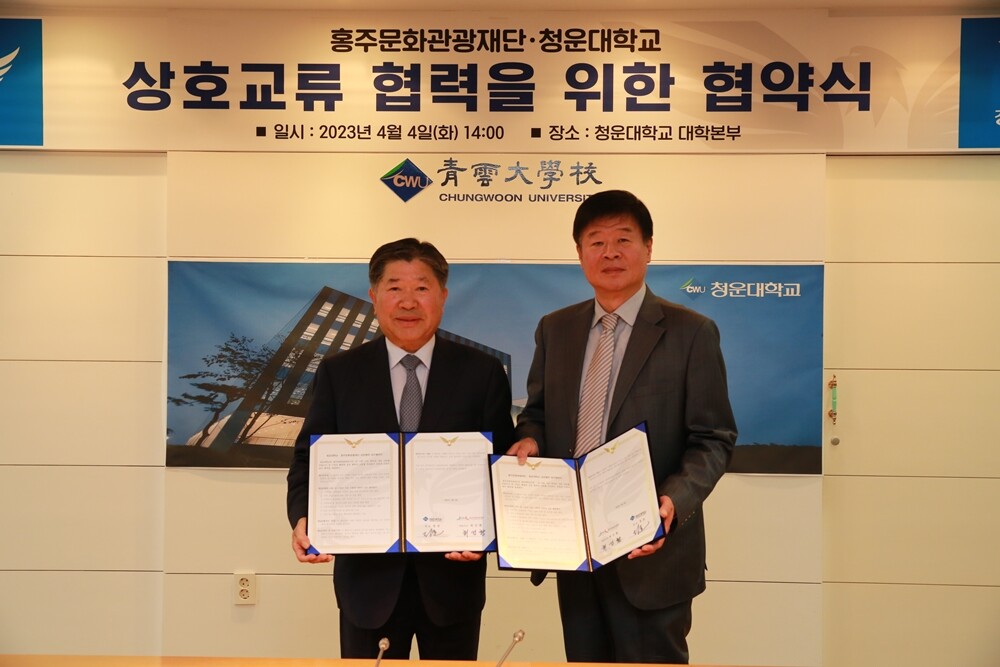 [대학저널 온종림 기자] 청운대학교가 4일 대학본부 회의실에서 홍주문화관광재단과 지역사회 문화예술 및 관광사업에 관한 상호 업무협약을 체결했다.