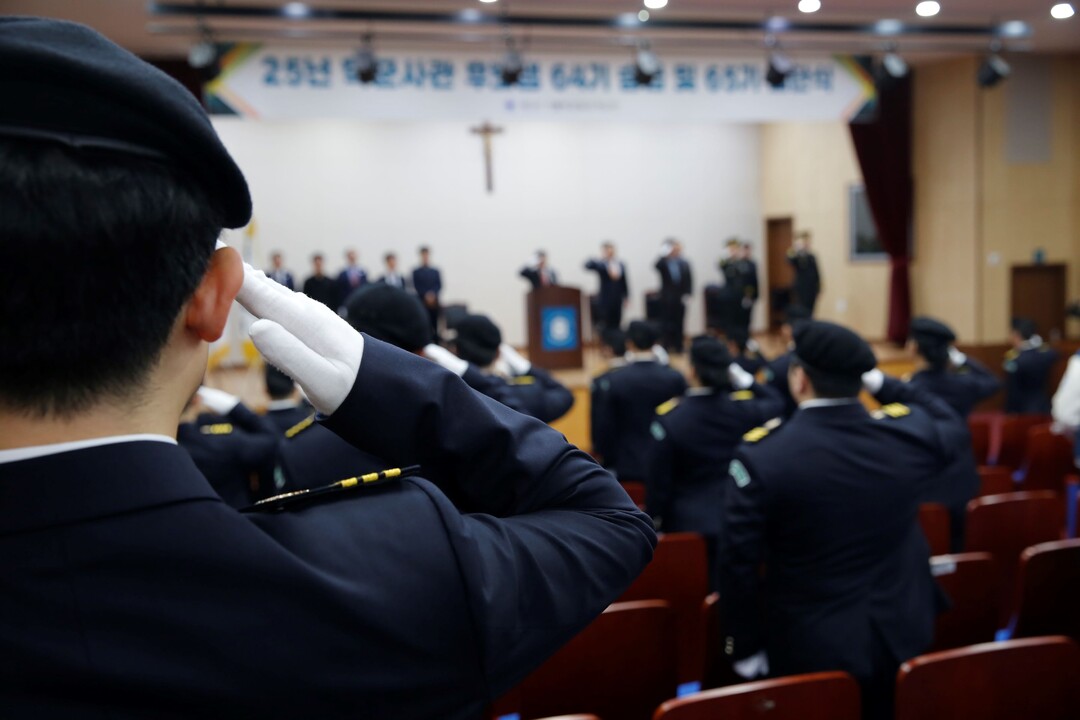 김용승 총장은 축사를 통해 “학업과 군사교육을 병행해야 하는 고된 후보생 생활을 열정과 끊임없는 도전, 뜨거운 동기애로 슬기롭게 헤쳐 나가 가톨릭관동대를 빛내는 자랑스러운 147학군사관후보생이 되길 바란다”고 당부했다.
