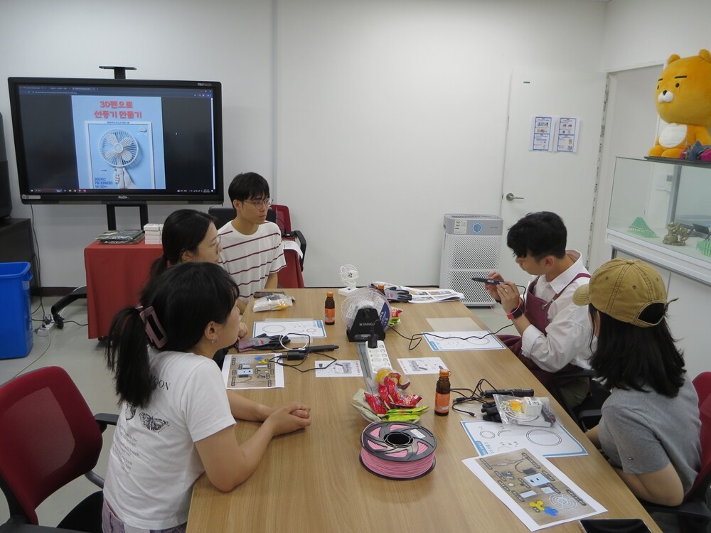 3D펜은 180도 이상의 열로 녹이고 상온에서 빠르게 굳는 필라멘트를 사용해 입체 구조물을 만들 수 있는 기기다. 이번 체험 수업은 약 2시간 동안 이론 교육과 작품 제작 과정으로 구성되었으며, 참가자들은 3D펜의 사용법과 작동 원리를 배우고 직접 선풍기를 제작했다.