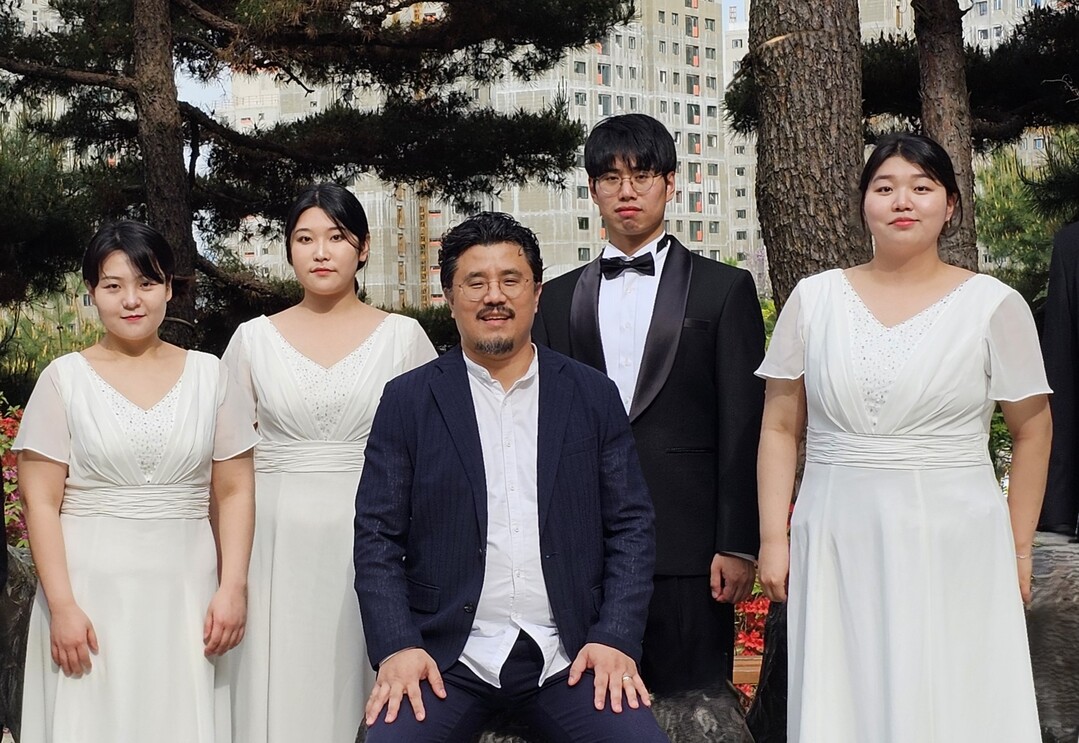 ‘영 아티스트 콘서트’ 출연 안양대 음악학과 성악 전공 교수와 학생들. 왼쪽부터 소프라노 김정현, 소프라노 현채린, 예술총감독 오동국 교수, 바리톤 강지훈, 소프라노 이재은. |