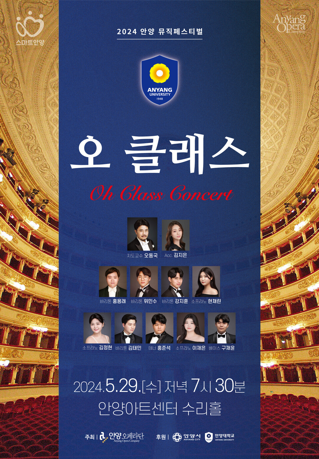 [대학저널 이선용 기자] 안양대학교 음악학과 성악전공 학생들의 연주회 ‘2024 오 클래스’가 5월 29일 열린다.