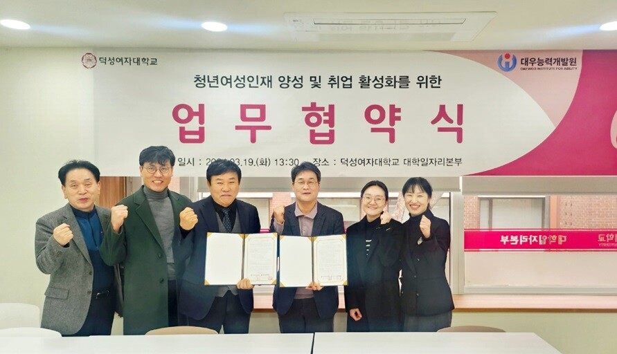 [대학저널 이선용 기자] 덕성여자대학교는 3월 19일 오후 1시 30분 대학일자리본부 진로취업지원센터 세미나실에서 대우능력개발원과 IT 역량을 갖춘 청년 여성 인재 양성 및 취업 활성화를 위한 상호협력 업무협약을 체결했다.