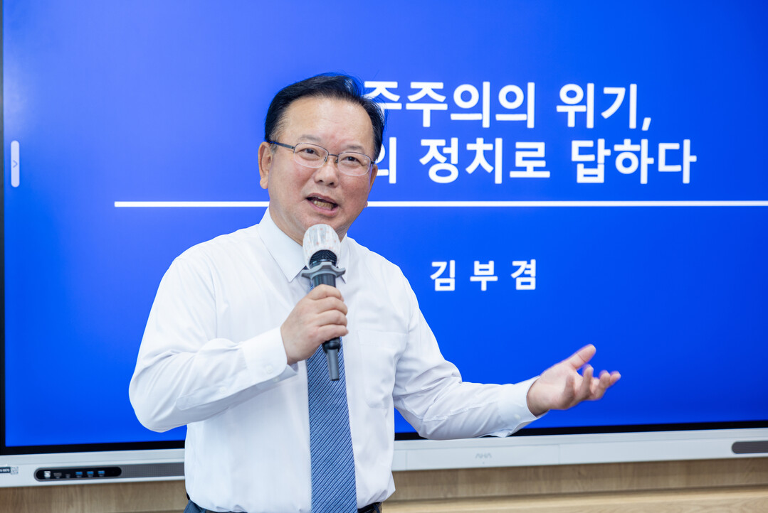 김부겸 전 국무총리는 경상국립대 교수, 교직원, 학생 등 100여 명이 참석한 가운데 ‘민주주의의 위기, 공감의 정치로 답하다’라는 제목으로 2시간 동안 강의했다.