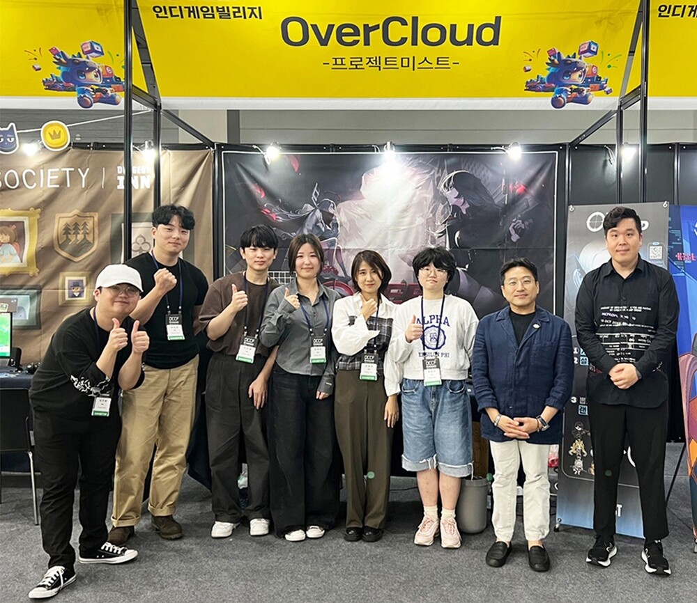 'OVER CLOUD'를 개발한 '프로젝트 미스트' 팀은 영상애니메이션과 3학년 김진형, 김태온, 박민제, 이유빈, 채효민 학생 5명으로 구성됐다. 이들은 전공 수업에서 습득한 스토리텔링과 비주얼 아트 기술을 바탕으로 독창적인 게임 세계를 구현했다.
