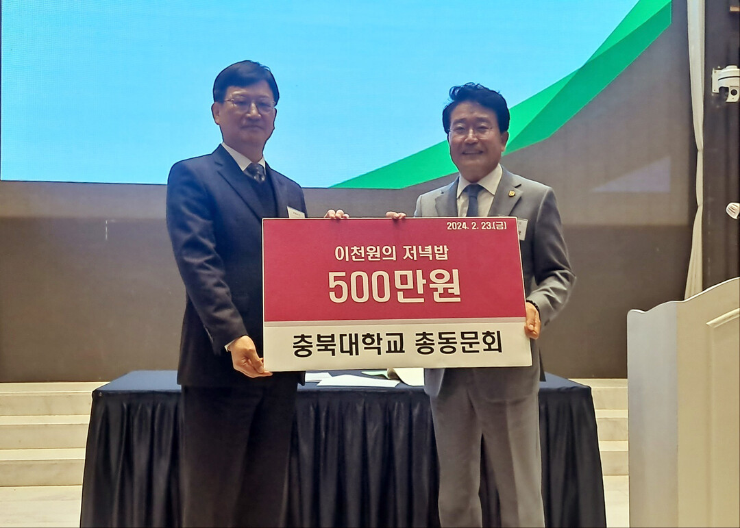[대학저널 온종림 기자] 충북대학교 동문들이 후배들을 위해 손을 걷었다. 충북대 총동문회는 지난 23일 상임이사회 및 정기총회 자리에서 이천원의 저녁밥 사업에 활용해달라며 500만원을 기탁했다.