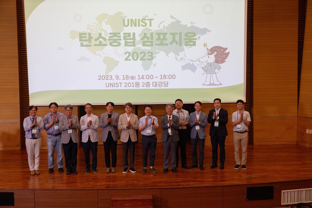 UNIST가 18일 대학본부 대강당에서 ‘UNIST 탄소중립 심포지움 2023’을 개최했다. 탄소중립의 현 주소를 진단하고, 탄소중립 사회로의 이행전략을 논의하기 위해 마련된 자리다. 환경과학, 정책, 기업경영 등 다양한 분야의 전문가들이 참석해 머리를 맞댖다.