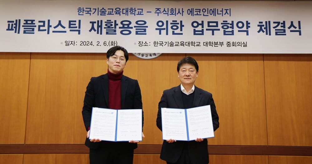 [대학저널 온종림 기자] 한국기술교육대학교가 지난 6일 대학본부 중회의실에서 주식회사 에코인에너지와 ‘플라스틱 재활용을 위한 업무협약’을 체결했다.
