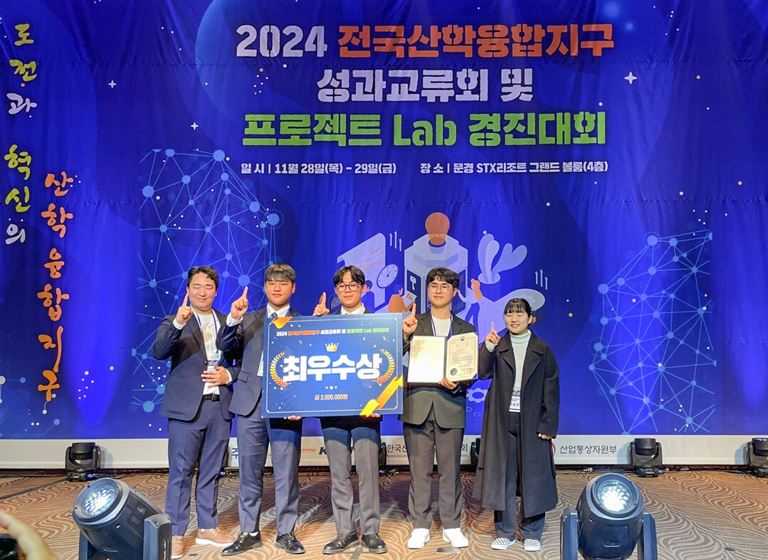 [대학저널 이선용 기자] 경남대학교 기계공학부 학생들이 최근 문경 STX리조트 그랜드 볼룸에서 열린 ‘2024 전국산학융합지구 성과교류회 및 프로젝트 Lab 경진대회’에서 최우수상인 산업통상자원부장관상을 수상했다.