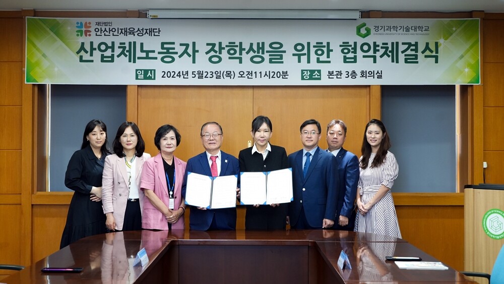 [대학저널 온종림 기자] 경기과학기술대학교가 (재)안산인재육성재단과 안산시에 거주하는 직장인 학생들이 산업체 노동자 장학사업에 참여하여 신청할 수 있도록 하는 업무협약을 23일 대학 본관 3층 회의실에서 체결했다.