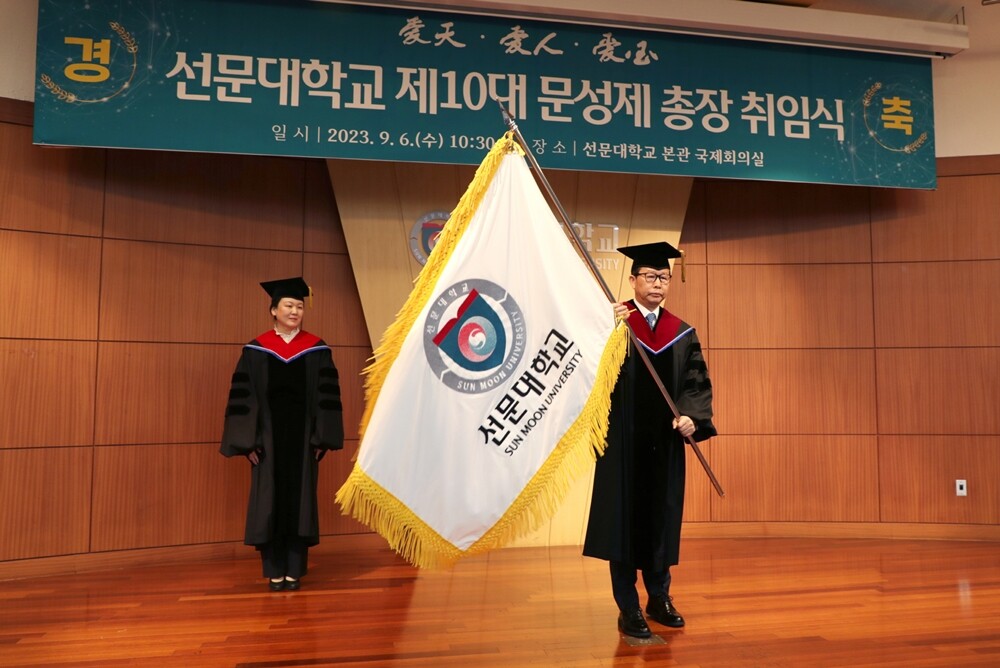 [대학저널 온종림 기자] 선문대학교가 6일 선문대 국제회의실에서 제10대 문성제 총장 취임식을 개최했다.
