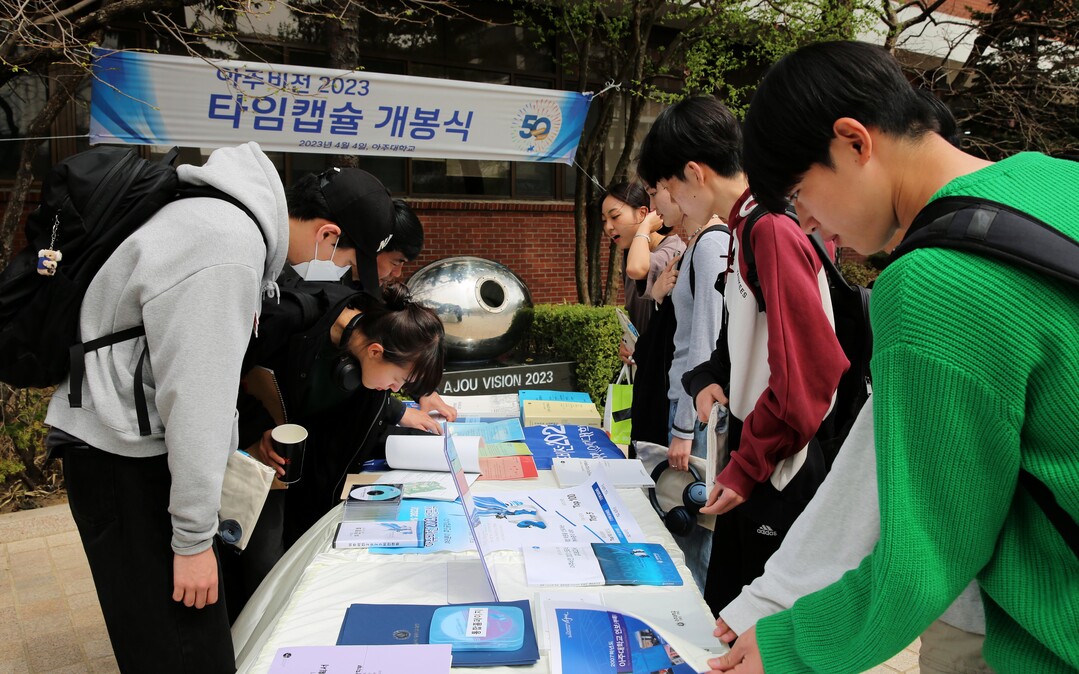 타임캡슐에는 “융합학문을 선도하는 세계 수준의 대학”이 되겠다는 ‘아주비전 2023’의 목표와 지향을 반영한 20종의 내용물이 담겼다. ‘아주비전 2023’과 관련한 책자와 선언문, 대학 마스터플랜 등과 당시 대학 현황 자료 및 이미지 등이다.