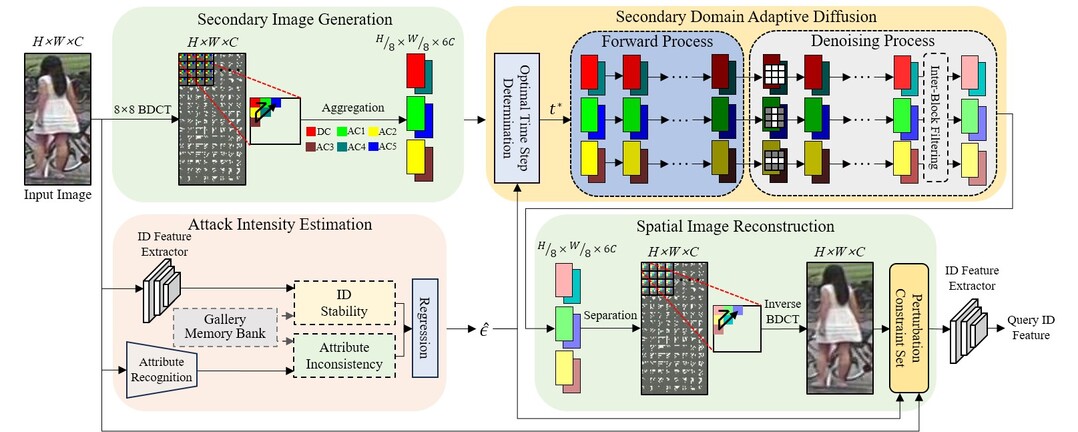정확도 및 복잡도 면에서 효과적인 정화를 위해 입력 이미지를 이산 코사인 변환 기반 2차 이미지로 재구성해 적대적 공격이 주로 가해지는 특정 주파수 영역에 초점을 맞춰 정화하는 2차 도메인 적응 디퓨전 모델을 새롭게 제안한 것이다.