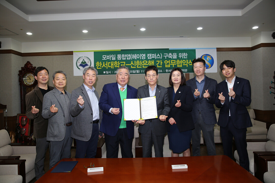 [대학저널 이선용 기자] 한서대학교와 신한은행이 모바일 기반 통합애플리케이션인 ’헤이영 캠퍼스‘ 구축을 위한 전략적 업무협약을 체결했다.